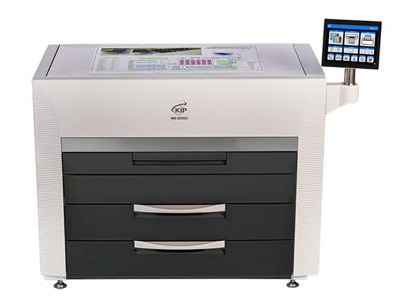 The KIP 970 workgroup and departmental print system is designed for high demand project requirements, with outstanding performance and reliability. High resolution colour and black & white mixed set production with built-in cost efficiency reporting. Expand the compact front stacking design with versatile rear stacking or folding accessories that increase productivity. Touchscreen convenience offers advanced network cloud access, set printing and system management without a PC workstation.